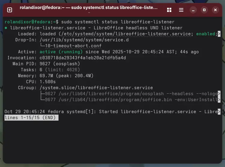 By default, unoconv starts a new LibreOffice instance for each conversion, which is fine for small workloads, but for our setup, we want it to run as a persistent headless listener. This way, your system doesn't have to fire up LibreOffice for every conversion, thus keeping resources predictable and enhancing system stability.